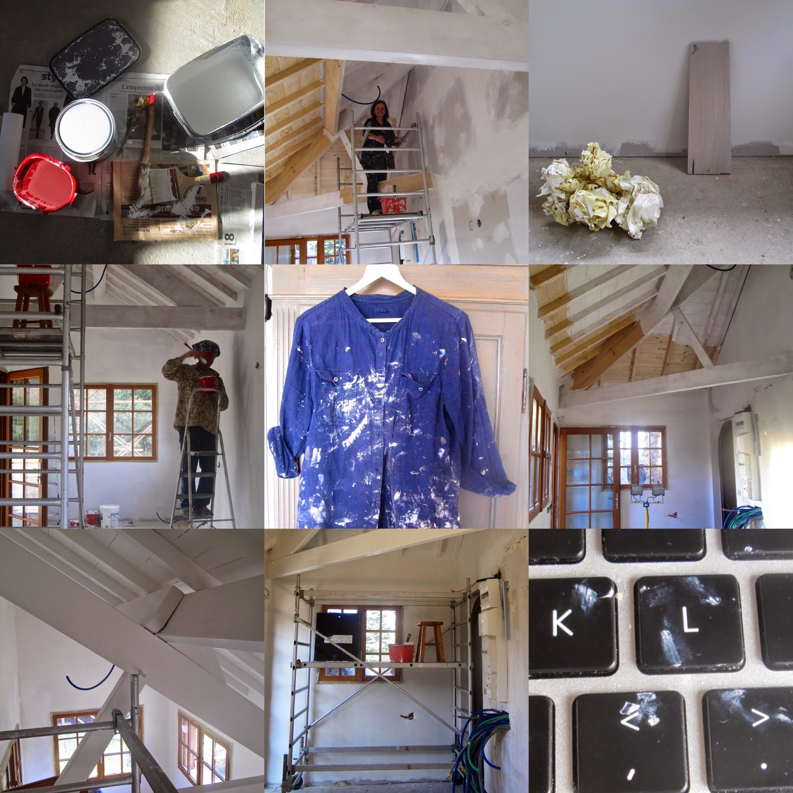 I always like sneaking shots of MC onto the blog. This was an easy one. She spent the afternoon giving the wood trim its first 2 coats of paint while Tom roto-tilled the vegetable garden and planted little lettuces. Meanwhile Borko napped and I took a walk, stumbling on M. Brasi's yard with exotic fowls and male pheasant. My attempts at imitating a female pheasant didn't fool him however and he never fanned out his splendid tail feathers.